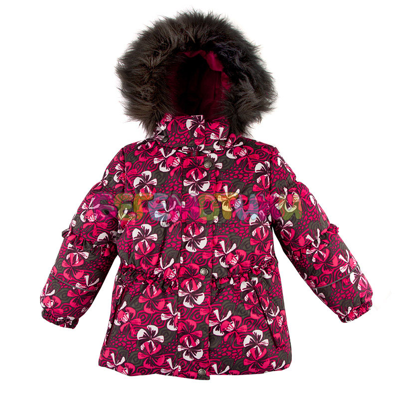 Теплая куртка для девочки Anni из ткани модных расцветок. Приталенный силуэт. Куртка украшена рюшами. Карманы на молнии, застежка молния защищена планкой. Отстегивающийся капюшон с опушкой из искусственного меха. Вставки из мягкого флиса в капюшоне и на воротнике. Рекомендуем в качестве комплекта полукомбинезон для девочек Piia.