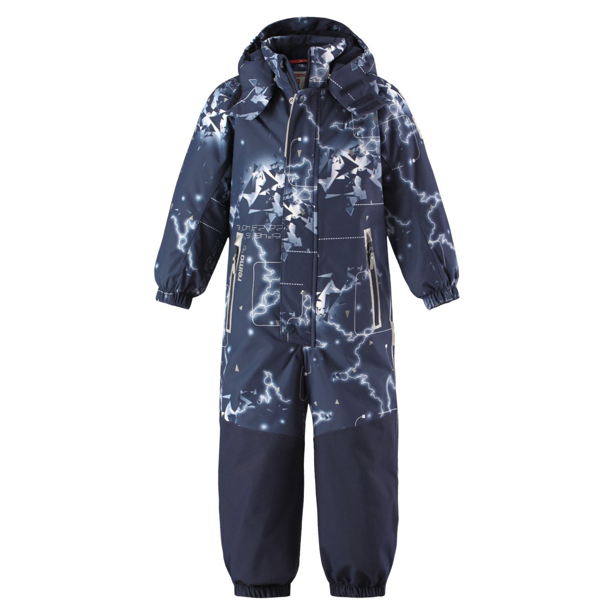 Íîâèíêà îò Reima - çèìíèé êîìáèíåçîí äëÿ ìàëü÷èêîâ Reimatec Koli èç òêàíè ñ ðèñóíêîì, ñâåòÿùèìñÿ â òåìíîòå. Íèæíÿÿ ÷àñòü êîìáèíåçîíà âûïîëíåíà èç î÷åíü ïðî÷íîé èçíîñîñòîéêîé òêàíè Reimatec Duraplus, âñå øâû çàïàÿíû è âîäîíåïðîíèöàåìû. Ó êîìáèíåçîíà óäîáíûé ñúåìíûé áåçîïàñíûé êàïþøîí ñ íåáîëüøèì êîçûðüêîì, äâà êàðìàíà íà ìîëíèè, ïðî÷íûå ñúåìíûå ñèëèêîíîâûå øòðèïêè.